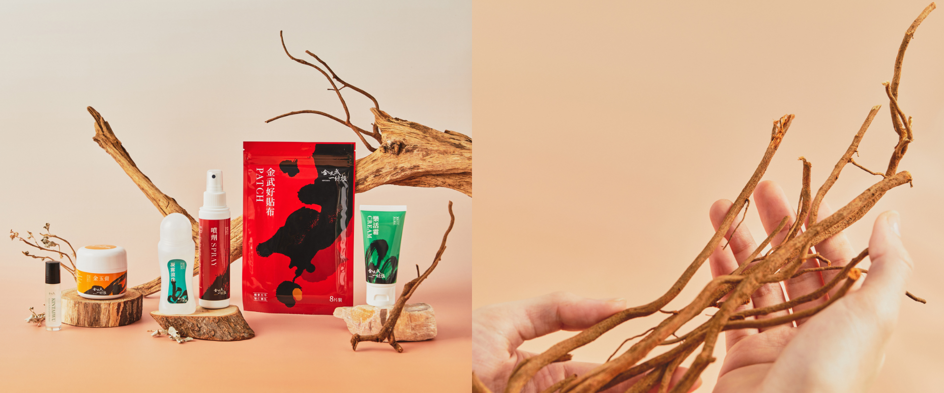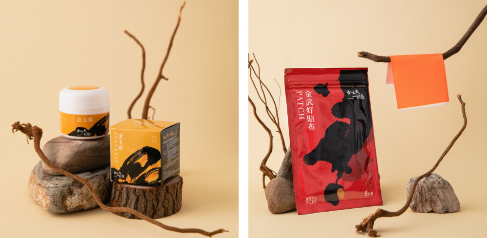 「從小也是耳濡目染,自然而然就選擇相關科系。」Michael畢業於高雄醫學大學香粧品學系,接班後,他希望扭轉大家對一條根的傳統既定印象,讓一條根成為更貼近現代生活的保健品。「許多人不喜歡傳統藥膏濃厚的味道,所以我們就針對味道去設計出草本淡香的配方。」金太武也開發了多種劑型,讓產品能滿足不同使用情境。「油膏適合按摩與刮痧,貼布方便又快速,乳霜清爽不黏膩,滾珠則讓使用者可以隨時按摩又不沾手,噴劑在運動後大面積使用。」產品的效果皆是以深層舒爽全身疲勞為訴求。