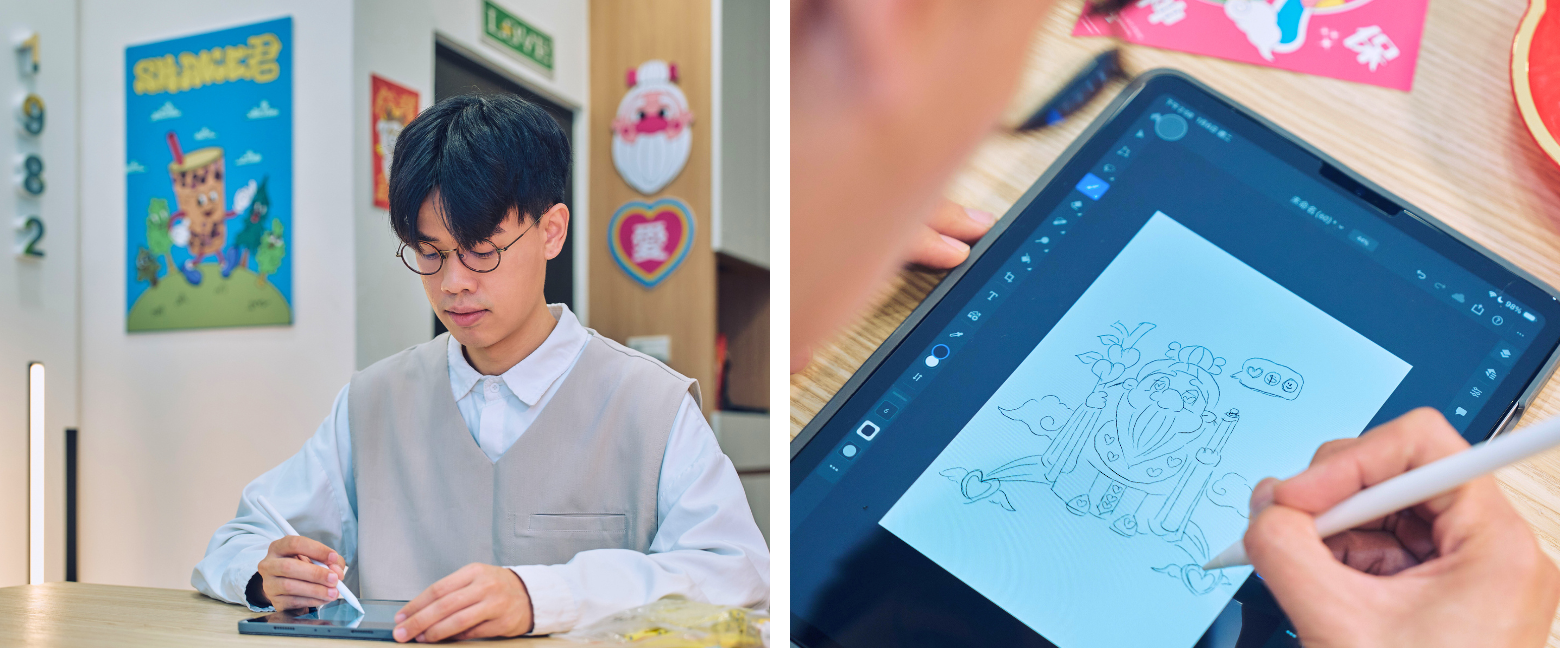2024 年在誠品南西舉辦的「愛情靈廟」活動,對同學來說是一次重要的里程碑。「那次活動,很多人帶著月老小公仔來找我簽名,原來我的作品已經陪伴他們這麼長時間。」每一次與粉絲相見的機會,都讓他無比珍惜。