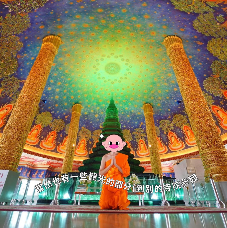 為了沉澱身心與為家人祈福,在一位道教師父的引薦下,同學前往泰國短期出家一個月。在與世隔絕、沒有手機的日子裡,他跟著大團體靜心打坐、念經、聽聞佛法,在規律作息中將自己抽離忙碌的日常。「以前我很容易緊張,總是都先往壞處想,但透過這次出家有種歸零,再重新開機的感覺。」這段修行經歷,不僅讓他治癒內心的不安,也讓他學會以正面的態度接納生活中的挑戰。