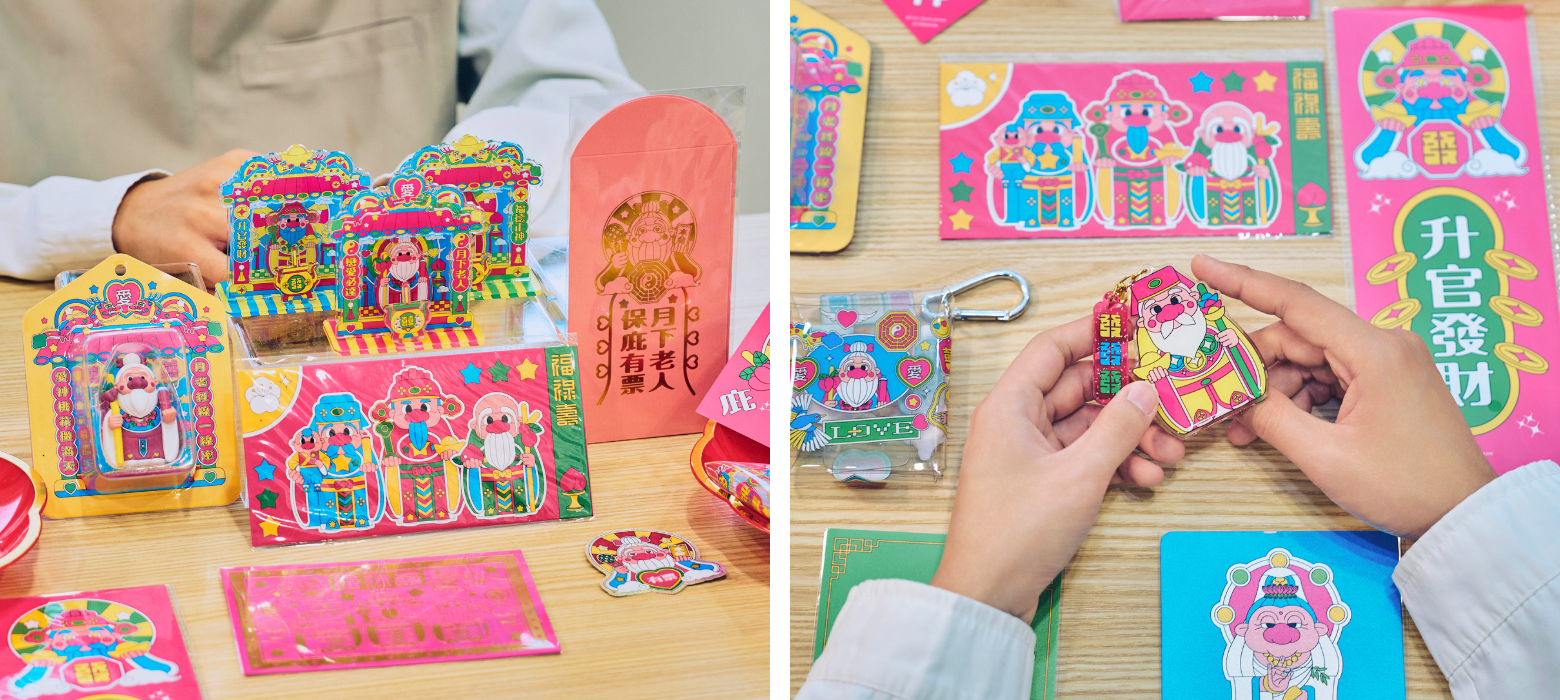 今年,不知道同學與誠品生活expo於年節期間攜手合作,他形容這就像與「老朋友」一起創造新驚喜。除了大家熟悉的月老,也將迎來守護平安的「里長伯」土地公、祈求升官發財的財神,以及象徵人生福份的「福祿壽」三星。「無論是愛情、人緣還是事業,希望大家都能在神明的陪伴下,過得更順遂、更快樂。」讓新的一年有眾神庇佑,為生活多一份趣味、多一份好運吧!