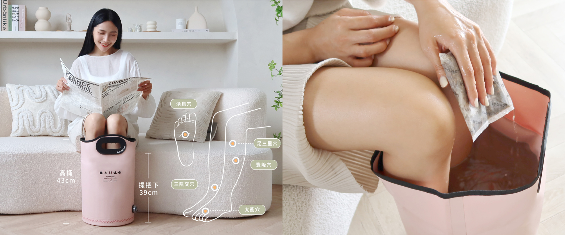 中醫師建議泡腳泡到小腿才是真正有效!市售許多泡腳袋只能泡到腳踝,久坐久站一整天,下半身容易囤積水分。樂木集的SPA足浴袋貼心設計 43cm加高桶身,可以泡到小腿肚,一次覆蓋湧泉穴、三陰交穴、承山穴、太衝穴、太溪穴等黃金穴位,泡腳不只是放鬆,而是真正的養生。