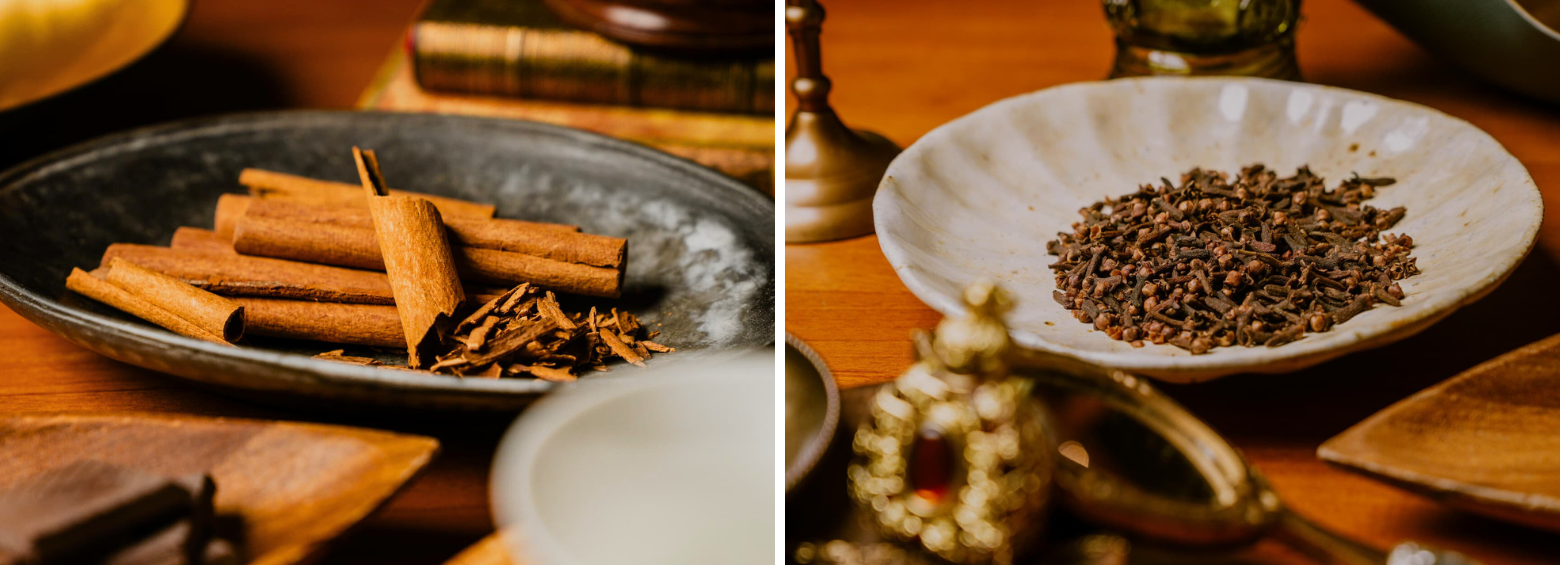 再結合那個時代不同作家提供的熱可可食譜配方,做出歸納與整理,精選出在三百多年後的今日還有用在食品上的肉桂與丁香,營造出屬於當時的香料熱可可層次。