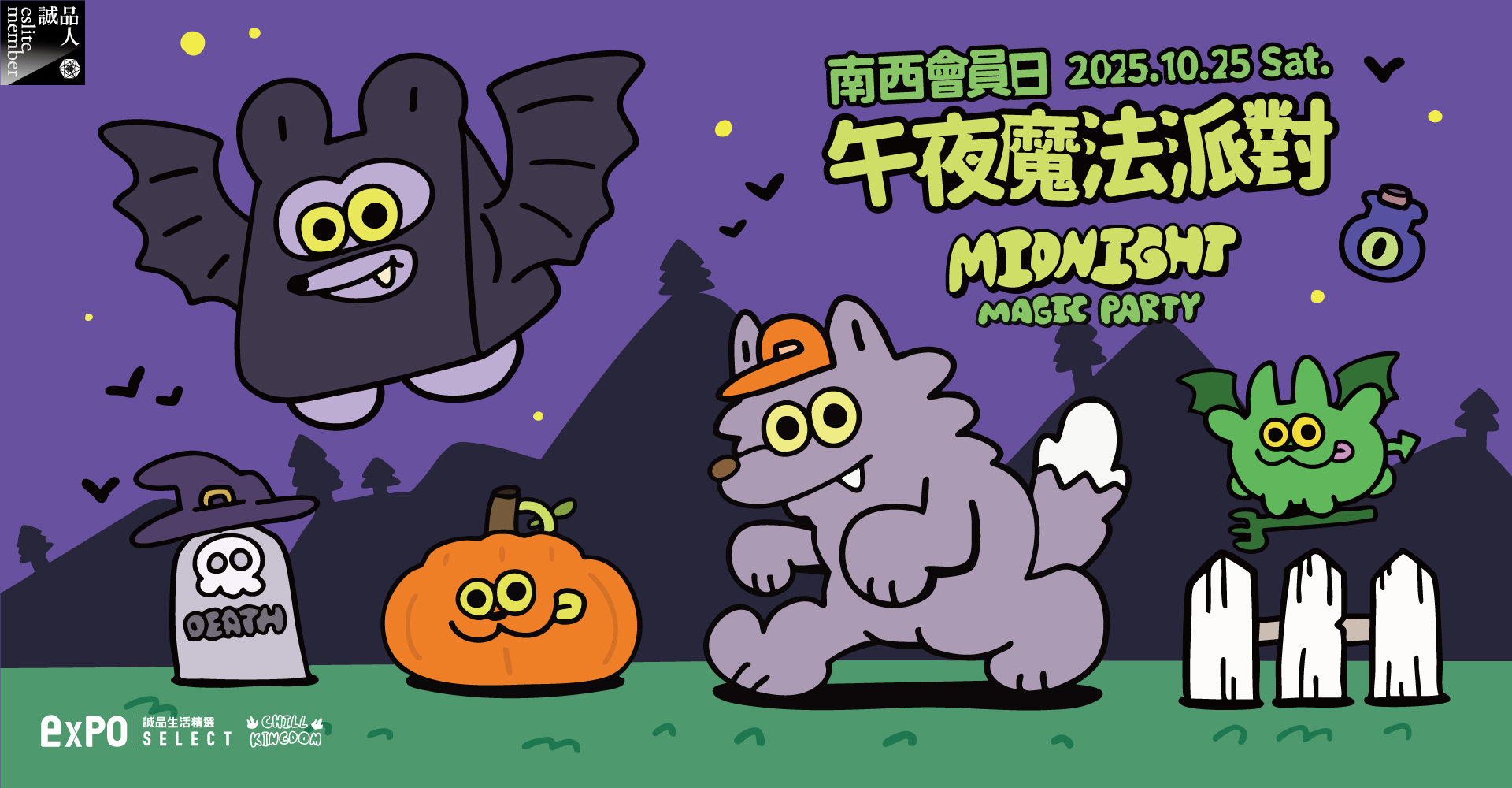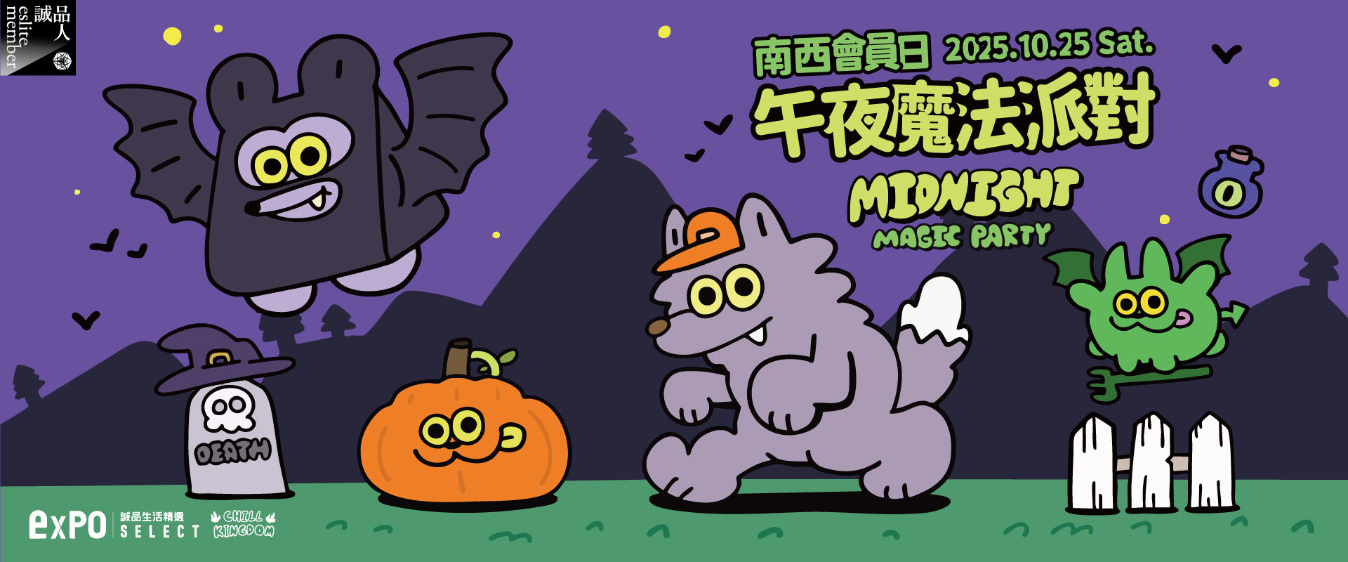 「南西會員日-萬靈夜總會_怪獸把我的購物清單偷走了!」熱度話題,expo SELECT與插畫品牌【CHILL KINGDOM】攜手,一同打造「午夜魔法派對_讓魔法生物幫你找回購物清單吧!」