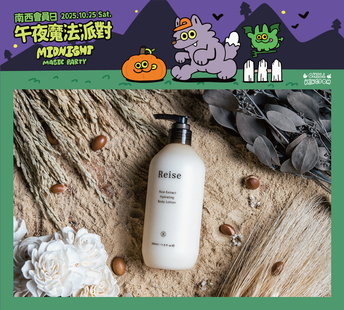 10/25(六)會員日當日,白卡會員單筆消費滿$2,500,金黑卡會員單筆消費滿$2,200,即贈【Reise米膚】保濕身體乳液 350ml 乙份!(贈品價值:$580)