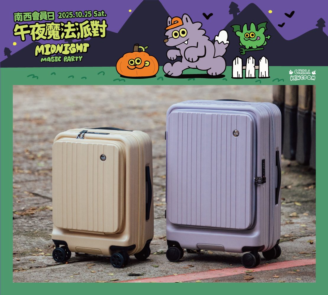 10/25(六)會員日當日單筆消費滿$888,並加入expo LINE好友,即享【ALLEZ】21吋掀蓋行李箱抽獎機會乙次!(贈品價值:$7,300)