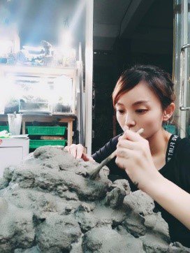 從事藝術創作的寧芮潔,常以水泥創作為主要媒材。