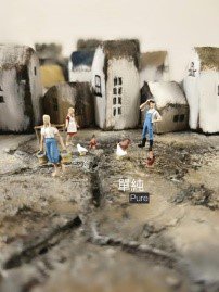 「我喜歡打造微景觀世界,運用不同媒材去創作房屋,把曾經在某個時空與文化背景下產生的居住型態表達出來,並且適當的將植物結合在作品中,把人與自然最起初的共生型態,來與那潛藏在記憶深處的自己去做對話。」